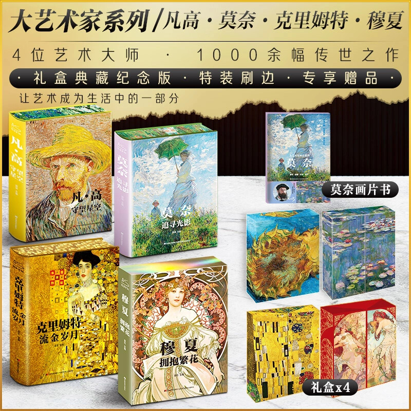 【精裝禮盒珍藏版雅昌印刷畫冊】莫奈 《追尋光影 》穆夏《擁抱繁花》 克林姆特《流金歲月》 梵高《守望星空》 隨書附贈多項週邊好禮 飛機盒包裝