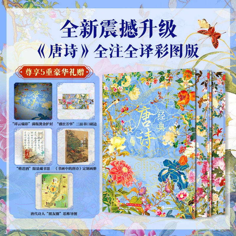 【三面刷邊首版首印】經典唐詩 全注全譯全彩版(全2冊)附贈 將進酒藏書票+書畫中的唐詩+唐代詩人「朋友圈」思維導圖