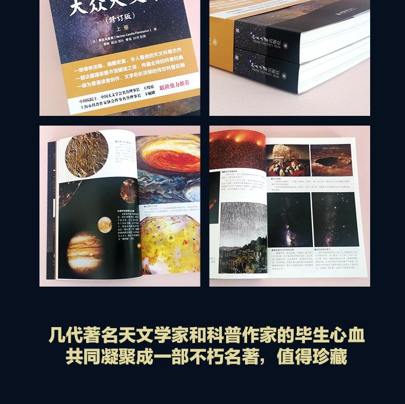 本書是一部天文學科普名著,作者卡米伊·弗拉馬里翁以文學的筆觸將浩渺宇宙的絢爛與神奇展示給廣大讀者。它是迄今為止內容*全、篇幅*大、插圖*多的天文學科普名著,自問世以來,一直受到廣泛歡迎,被譯成十幾種文字,影響了一代又一代讀者,許多人因讀了這本書而愛上天文學,甚至因此從事而天文學研究工作。全書共分七篇,前六篇全方位描述和介紹了地球,月亮,太陽,行星世界,彗星、流星、隕星,恆星宇宙;第七篇簡單介紹了各種天文儀器,讓讀者了解天文工作者所使用的工具和他們如何依靠這些精密儀器獲得驚人發現。圖文並茂,引人入勝,配有大量的圖片資料。譯文流暢,通俗易懂,並保持了原有的文學風格;此外,譯者又根據近年來天文學的新發展作了增補和修訂,使全書內容翔實而新穎。此次修訂版針對前版的一些不足進行了修訂,替換插圖,改排彩插,使其更具學術價值和科普價值。