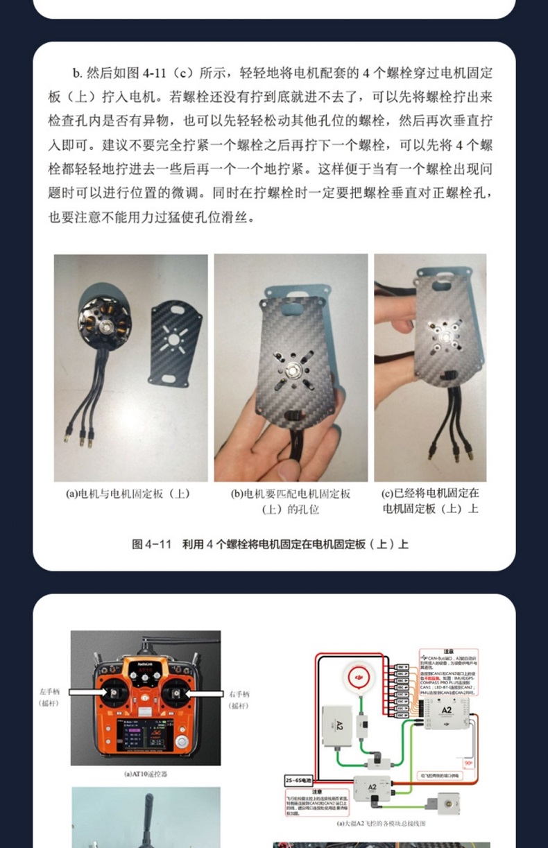 本書主要介紹組裝、調試一架四旋翼無人機的完整流程,包括組裝無人機機架、安裝電機和螺旋槳、電池充電保養、安裝飛控、飛行前調試,並且在組裝、調試過程中依次介紹了飛行原理、動力系統、遙控器、電池、飛控等相關基礎知識。