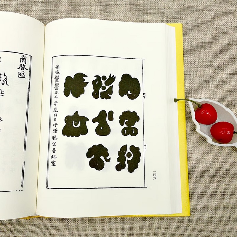 此書鈐有“吴廷”“吴廷之印”“吴文桂私印”“江邨”“謙牧堂藏書記”“兼牧堂書畫記”“是本曾藏宋葆淳家”“翁方綱”“覃溪”“覃谿審定”“蘇齋”“蘇齋墨緣”“寶蘇室”“阮元”“阮元私印” “阮元印”“阮伯元藏鐘鼎文字”“臣元奉敕審釋内府金石文字”“揚州阮氏琅嬛仙館藏書印”“琅嬛仙館”“文選樓”“積古齋印”“東壁圖書”“兵衛森畫戟燕寢凝清香”“甘泉岑氏懼盈齋珍藏印”“仲陶珍賞”“隴西癸巳人碩”“翼庵珍秘”“翼庵欣賞”“翼庵審定金石書畫記”“烏程蔣祖詒藏”“榖孫鑒藏”“密均樓”“祖詒審定” “海藏樓”等。通過題跋、著録和印鑒可知,這部《嘯堂集古録》歷經沈景春、吴廷、揆叙、宋葆淳、顔崇榘、阮元、端方、潘宗周、岑鎔、蔣祖詒、朱文鈞、翁方綱、黄紹箕、鄭孝胥等收藏或鑒賞。