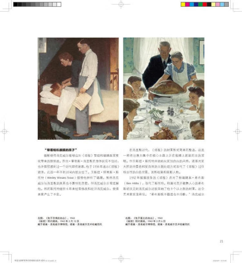 這是一本講述插畫大師諾曼 · 洛克威爾(Norman Rockwell 1894-1978)如何運用豐富詳細的照片創作寫實繪畫的書籍。洛克威爾擔任導演,和熟練的攝影師一起探討創作,精心編排模特,選擇道具和拍攝地點。讀者會驚訝地發現,洛克威爾的許多最令人難忘的角色,如在鏡子裡的女孩,舞會上的年輕夫婦,親戚朋友和鄰居都是出於畫家所拍攝的形象。在這本開創性的書中,作家和檔案學家羅恩·錫克深入探究了洛克威爾博物館中近20000張存檔照片,詳盡地揭示了這位大師的創作歷程。