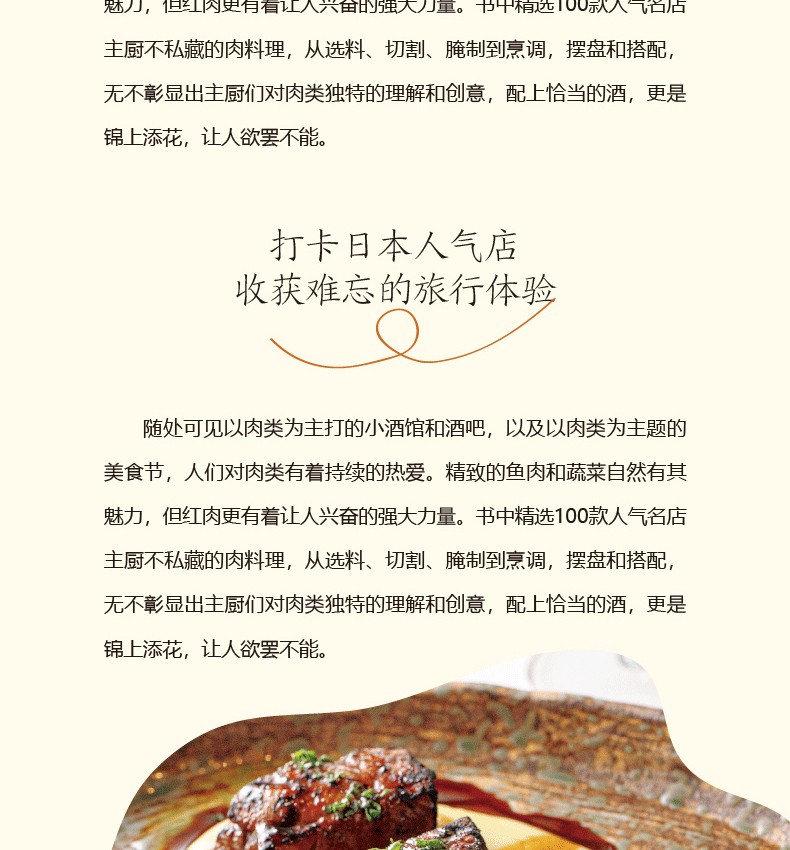 《日本人氣餐廳佐酒肉料理》介紹了100種富有創意的專業肉類的烹飪方法,按照牛肉、豬肉、羊肉、禽肉和其他肉類進行編排和分類,附有詳細的製作過程圖和專業的講解及演示。