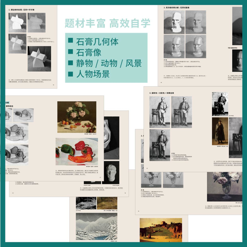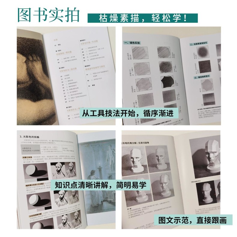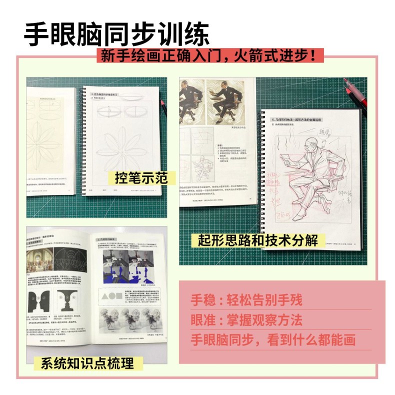 控筆萬物起形法+練習冊+素描光影色階法+練習冊(共4冊)直接畫臨摹本,光影素描本,繪畫教程書籍