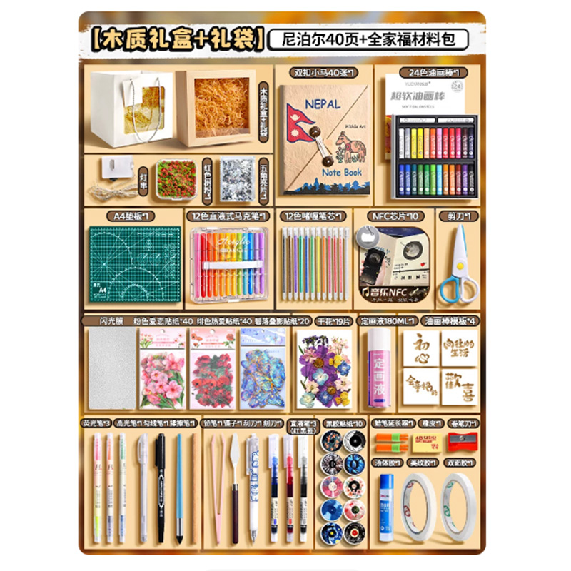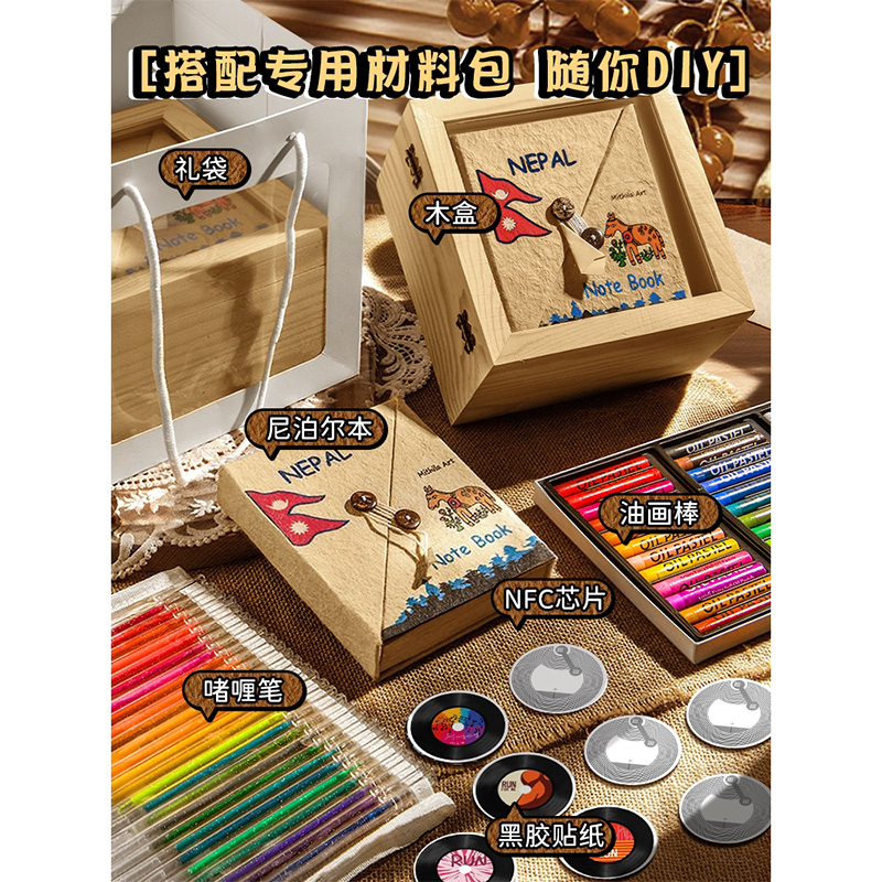 【木質禮盒+禮袋】尼泊爾40頁+升級全家福材料包 材質包如圖 NT$2190