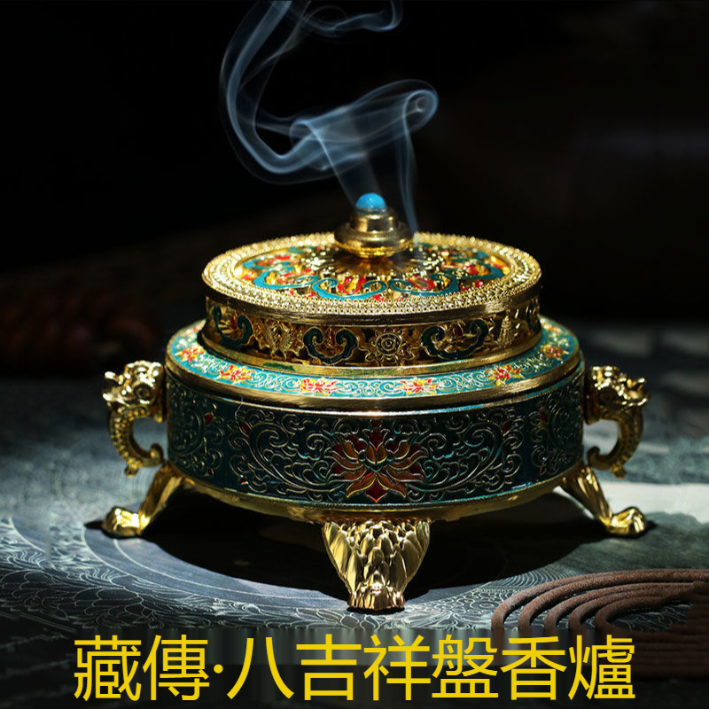 【手工製作】琺瑯禪意爐檀香爐 藏式八吉祥盤香爐