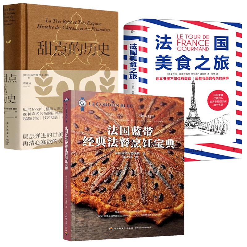 法國藍帶經典法餐烹飪寶典+甜點的歷史+ 法國美食之旅(共3冊)