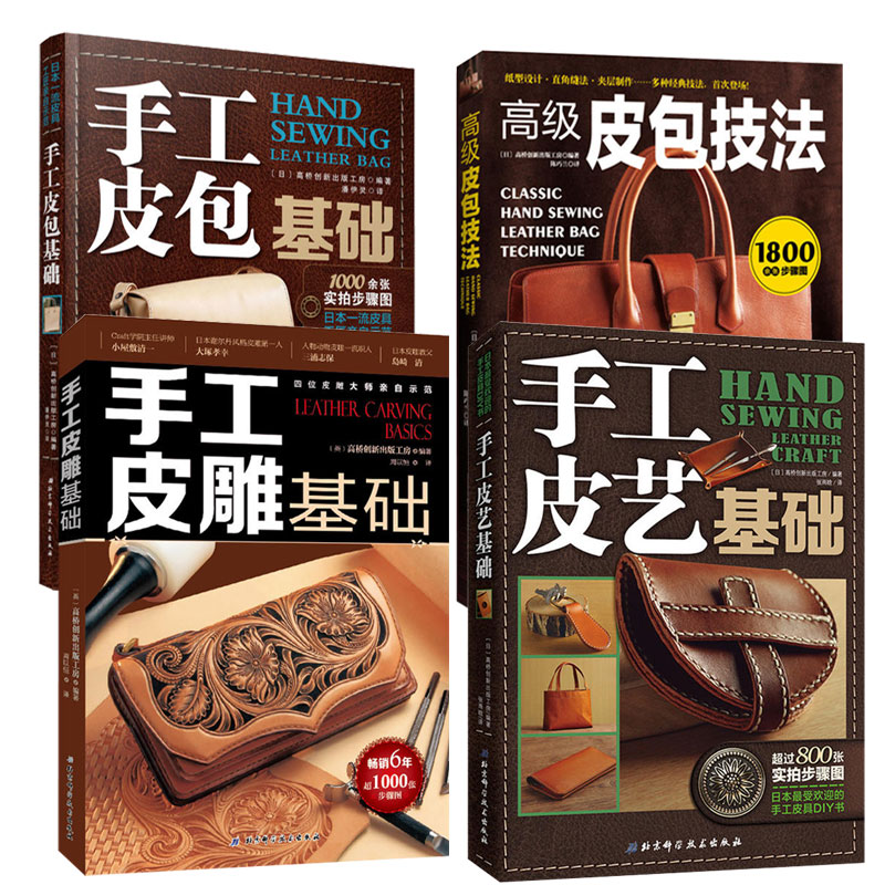 全4冊 手工皮藝基礎+手工皮包基礎+高級皮包技法+手工皮雕基礎 皮具製作書 手縫皮革技巧事典 皮革全程指導製作入門教材