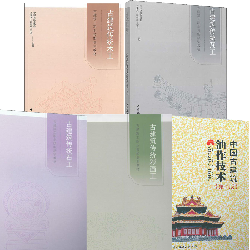 古建築傳統木工+瓦工+石工+彩畫工+油作技術 (全5冊)古建築理論知識 關鍵技術 工藝流程