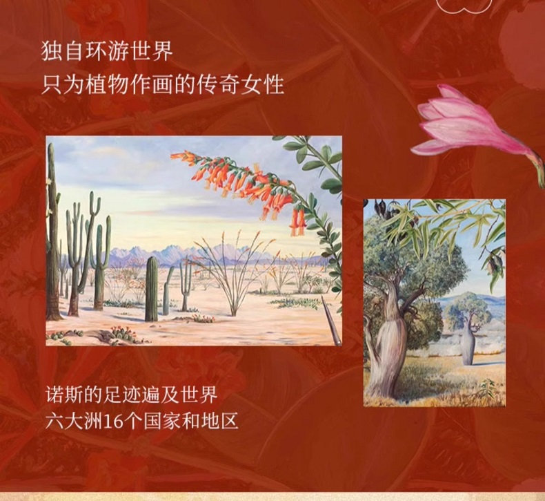 全書搭配近3萬字遊記,用第一視角記錄了她的全球探險經歷和植物發現之旅,兩本畫冊交相輝映,共同構成了瑪麗安娜·諾斯畢生科學探索和藝術成就的完整畫卷。她環遊世界六大洲,用細膩而豐富的筆觸,為我們探索、描繪了自然的神奇與壯麗,更用她的作品激發了人們對世界的好奇與熱愛,教育了一代又一代人去探索、珍惜這個多彩多姿的地球家園。