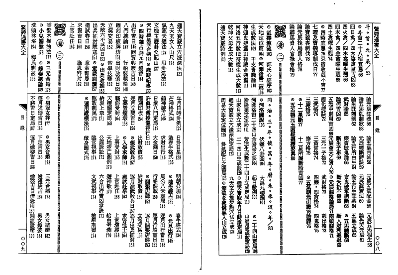 這是一本搜羅最廣泛的大部頭擇日類書,凡十卷。其中最珍貴的是收入了幾近「絕傳」的玉函鬥首元辰、河洛生成數、金精鰲、諸家鑾駕帝星、通天竅馬、蓋山黃道、雷霆昇玄、造命、禽遁、遁甲奇門(法奇門) ..... 等等完備的起例、斷訣,誠可謂為克擇法門的豐饒之海,剖千古之秘,發百家之蒙,同類書中古今無有堪與其匹者。