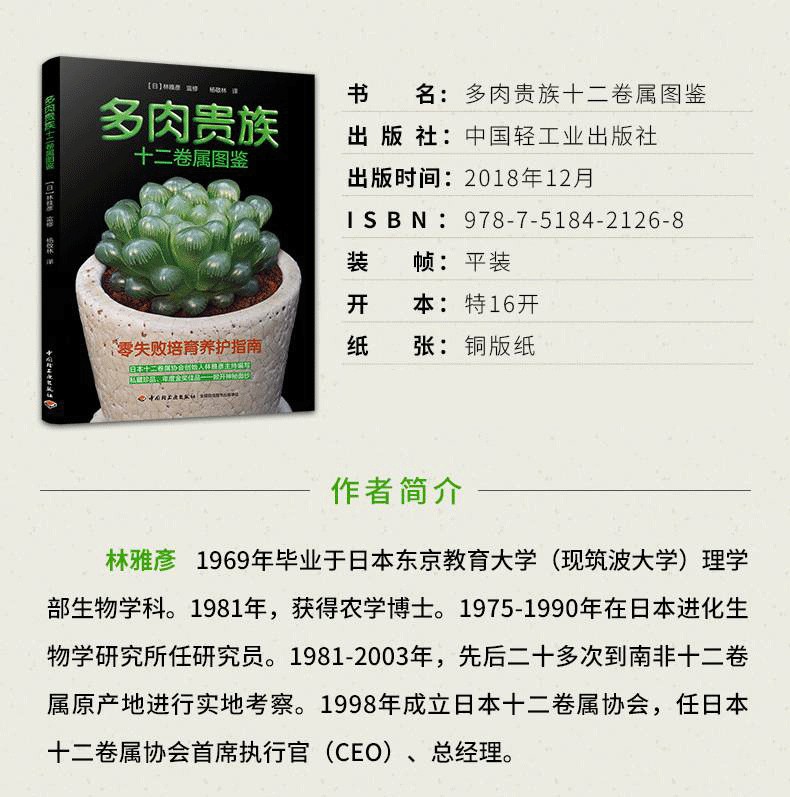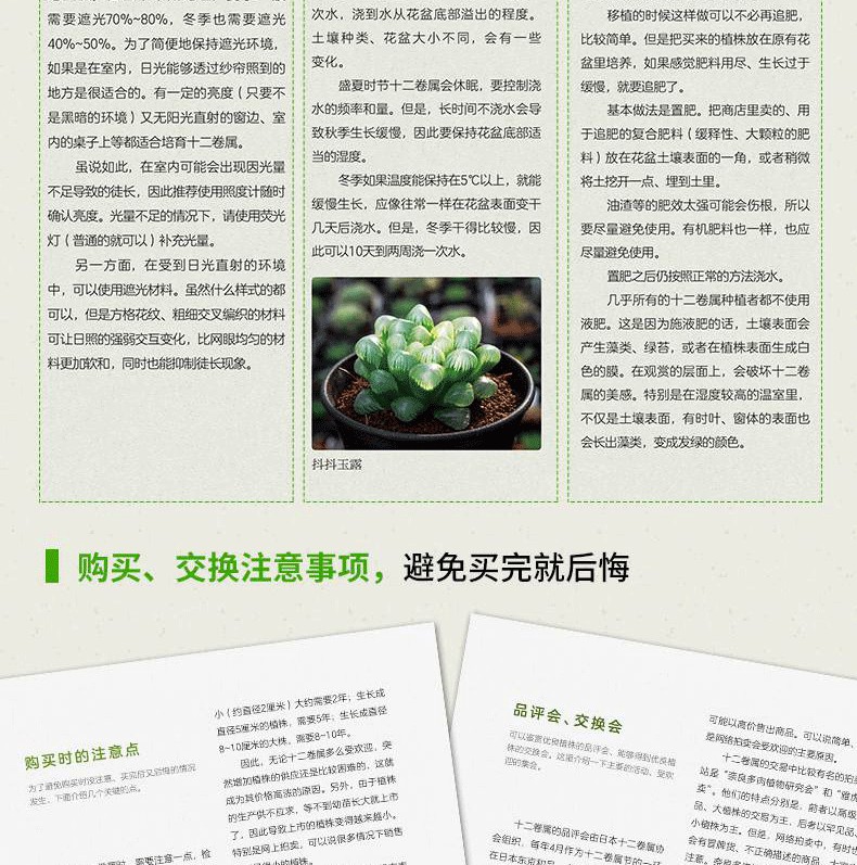 《多肉貴#族十二卷屬圖鑑》帶你一書看遍玉露、萬象、玉扇等8大類210多種十二卷屬多肉植物,包括日本十二卷大獎年度金獎品種和部分私人珍藏佳品、貴貨,閱“肉”無數的你秒變識貨的內行,慧眼買到真貨。