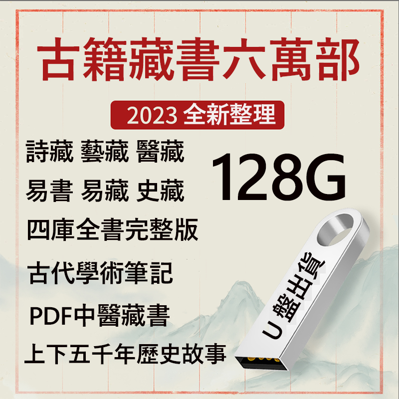 2023全新整理 四庫全書 詩藏 藝藏 醫藏 易書 易藏 史藏PDF 全集128G(U盤發貨 無需下載 即插即看 手機電腦都可以隨時觀看)