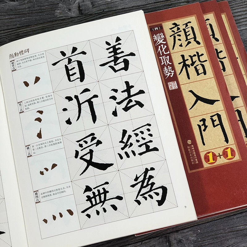 《顏楷入門1+1(二):偏旁部首》中的顏氏楷書是法度森嚴的典範,是眾多書法入門者的首選,在對顏楷的筆法筆劃、偏旁構件、結字規律和變化方式進行學習之後,便可進行集字練習等。 《顏楷入門1+1(二):偏旁部首》將《多寶塔碑》和《顏勤禮碑》的字例進行橫批、對聯、中堂、斗方等多種形式的組合,為習書者提供了學習的樣本,為其日後的楷書創作提供了方向。