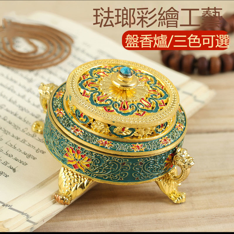 【手工製作】琺瑯禪意爐檀香爐 藏式八吉祥盤香爐