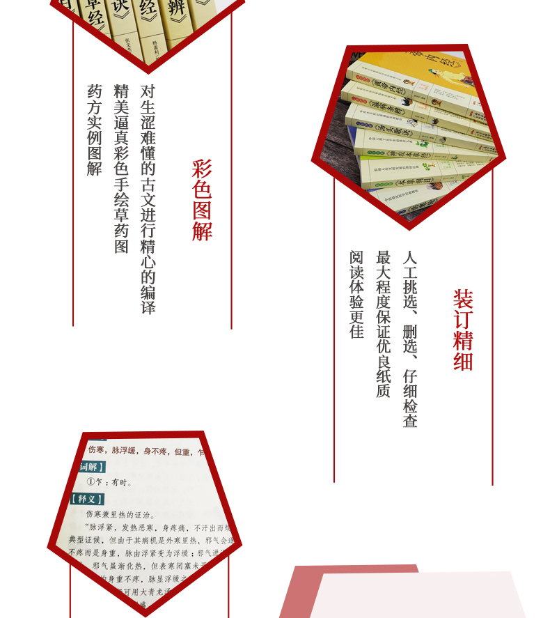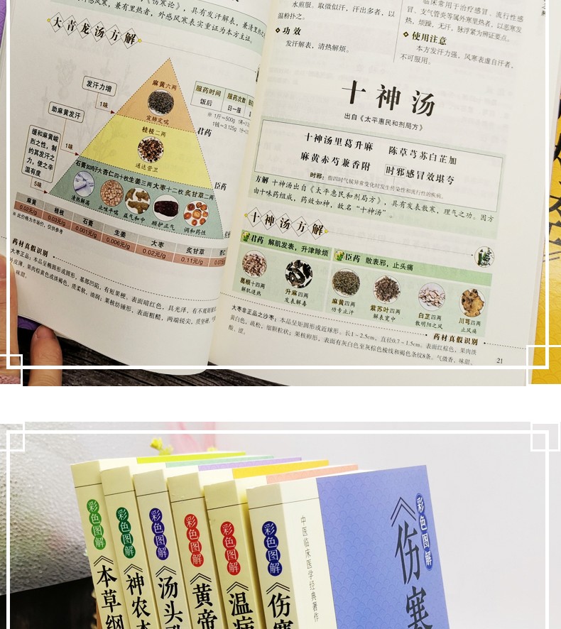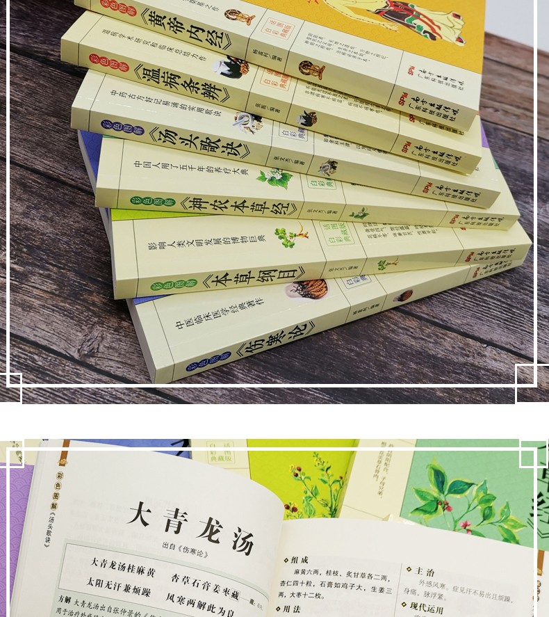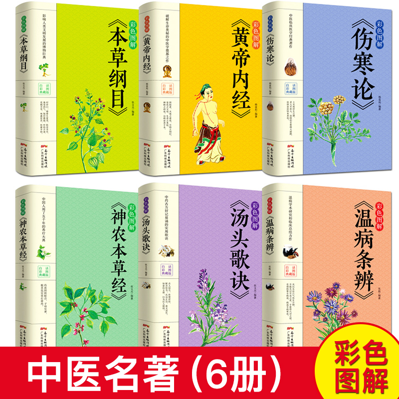 正版6冊彩色圖解中醫名著 本草綱目 黃帝內經 神農本草經 傷寒論 湯頭歌訣 溫病條辨 中醫基礎理論養生大全