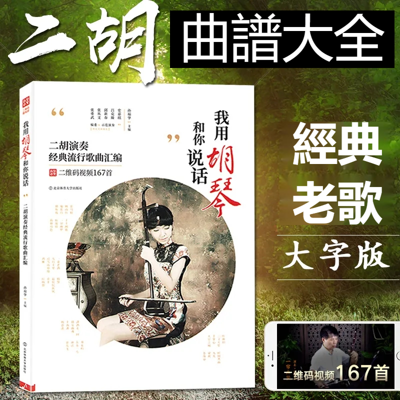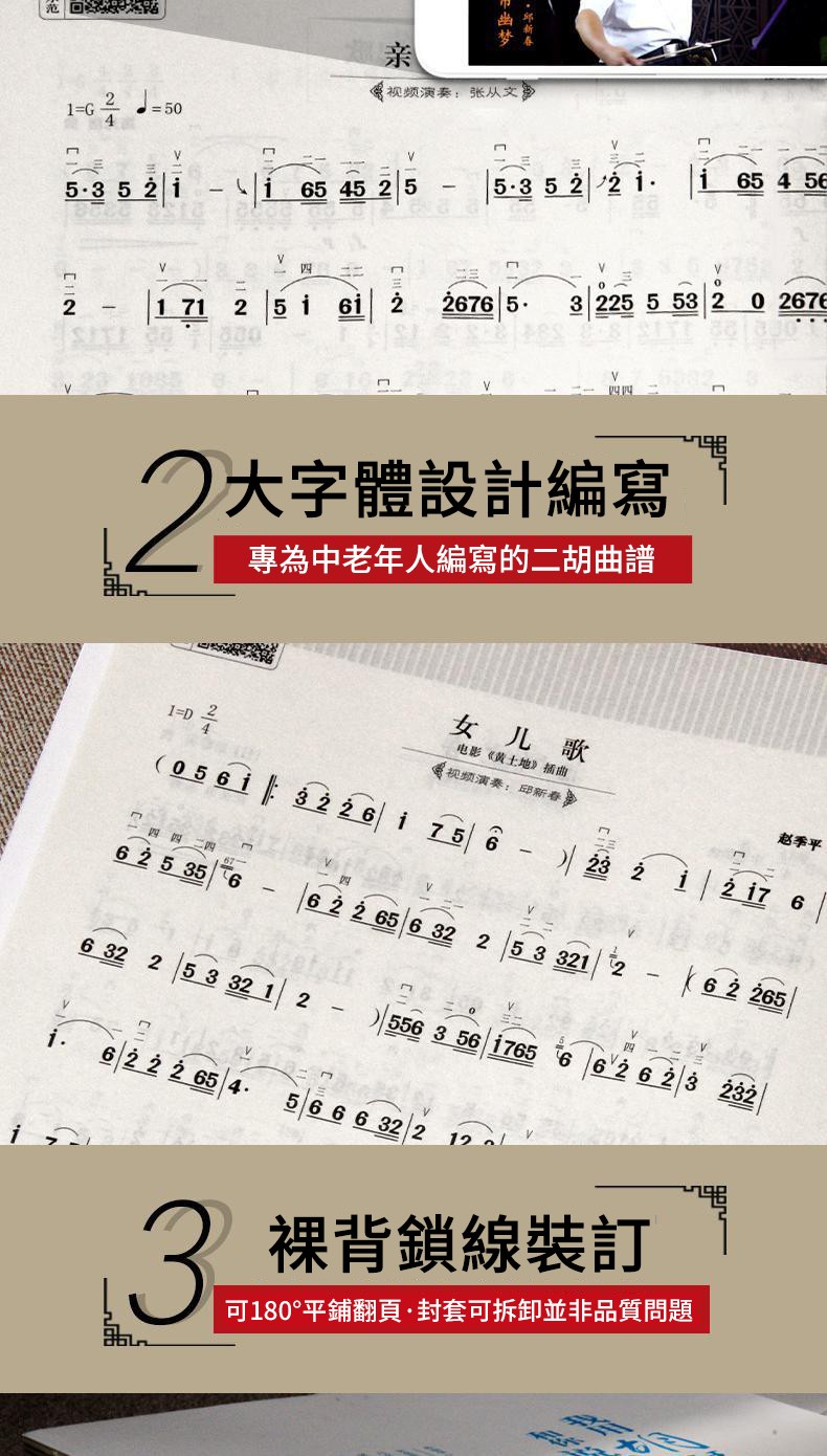 【附贈光盤DVD全套教程+掃碼看視頻】二胡演奏167首經典流行歌曲彙編——書中詳細標有指法,弓法,內外弦等 大字體,專為中老年人設計 高清視頻示範,一學就會!全台免運,貨到付款!