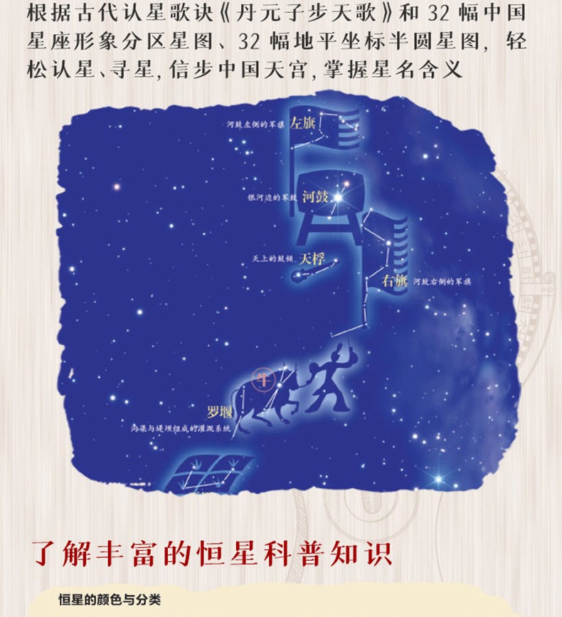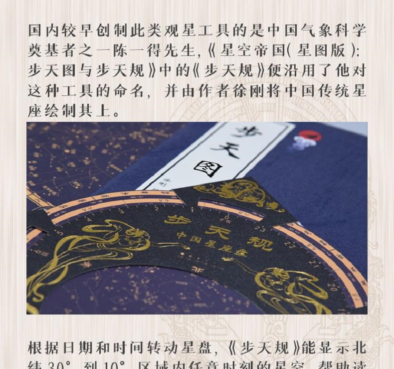 本書還在陳一得先生創作的「步天規」基礎之上,重新創制了新版步天規,讀者可以根據觀測日期和時刻進行測算,使用步天規觀測星空,引導自己認星識星,具有很大的研究價值。