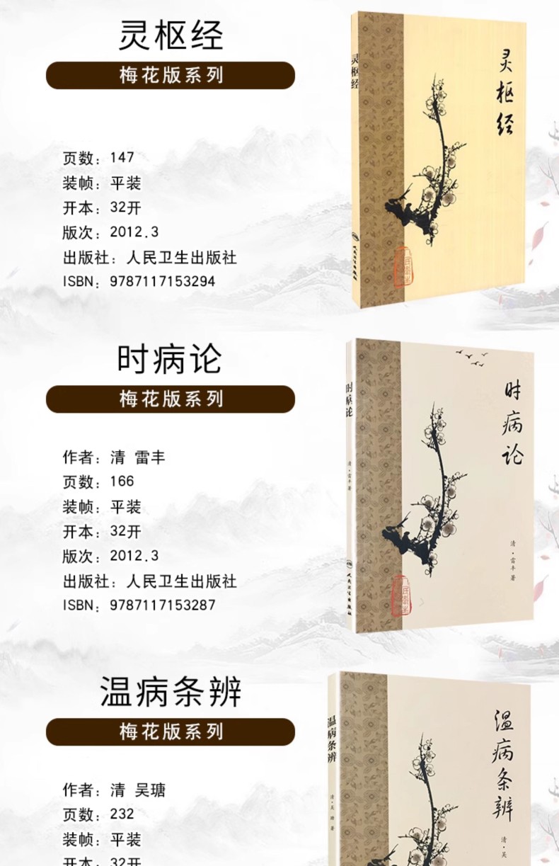 1963 黃帝內經 梅花版 (全6冊)黃帝內經素問+靈樞+註解傷寒論+金匱要略方論+時病論+溫病條辨