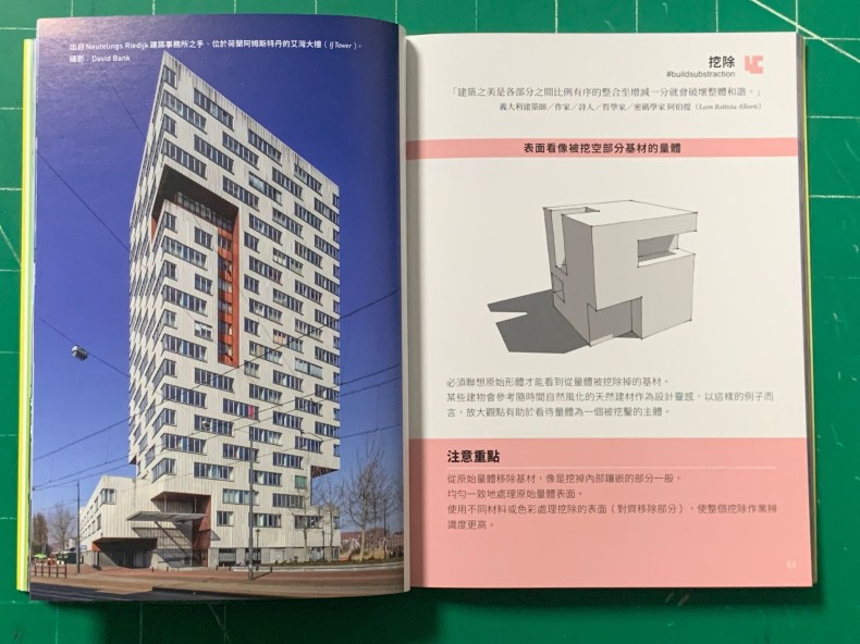 這本書藉由人為操控變換的實體縮小模型來引導各種創造建築空間的方式。它循序漸進地解釋如何構建建築空間,除了對於初接觸建築與室內設計學生或自學者非常實用之外,並引領更深遠的思考和探索。
