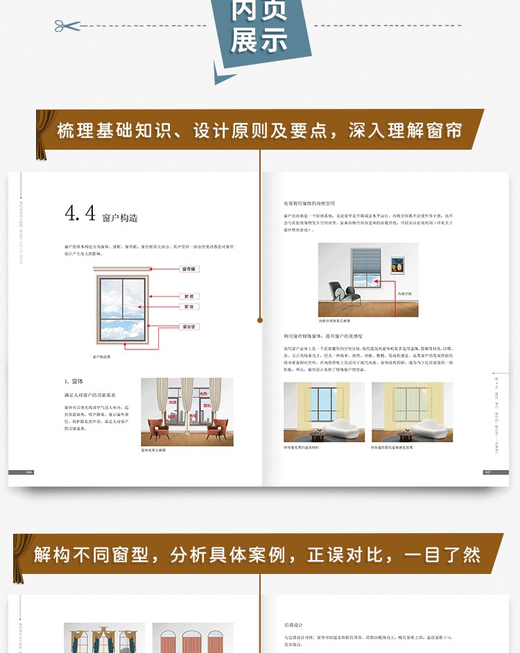 作者認為窗簾設計,首先要突破理論的瓶頸;然後是方法的系統性歸納,刪除過時的東西;後是對具體對象的研究。這個具體研究對象,就是窗戶窗型。而窗戶窗型,又是建築的一部分。因此我總結出一條窗簾設計的思路:要設計好窗簾,先要武裝頭腦(正確理念的引導)、讀懂建築結構、讀懂窗戶窗型結構、讀懂窗簾的設計內涵,再運用正確的方式方法,才能有準確無誤的窗簾設計。
