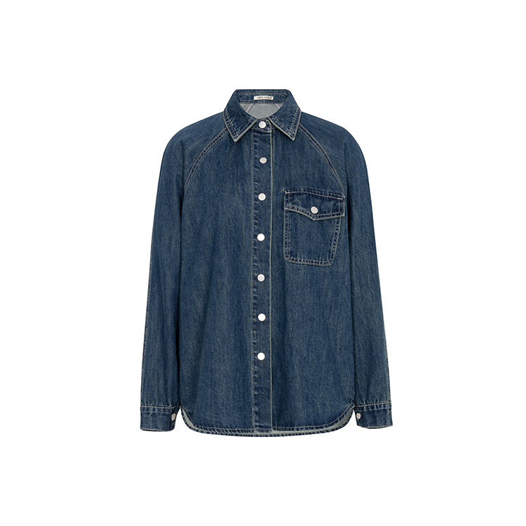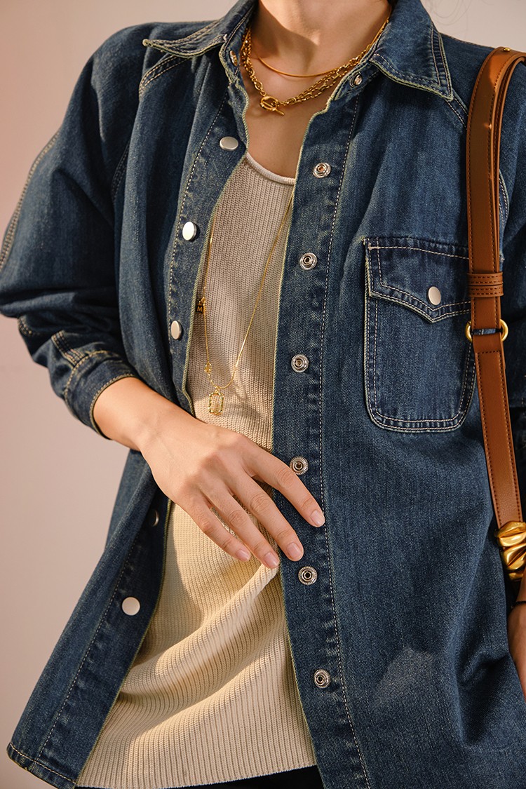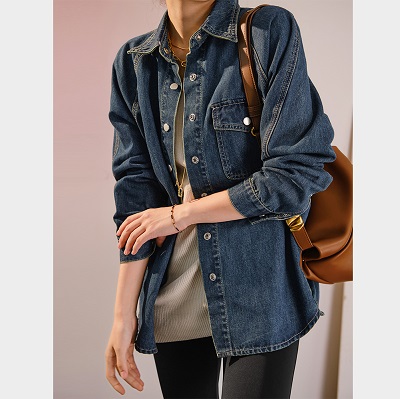 摩登口袋牛仔襯衫 百搭長袖襯衣夾克短外套春