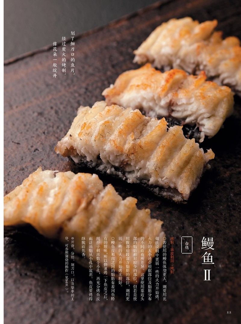 囊括海鮮、肉類和蔬菜等的50道日式烤物,均以一步一圖的形式詳細講解食材的準備與處理、穿串的形式及技巧、炭火火力的調控、烤醬的製作與刷塗、烤物熟度的判斷及掌控等炭火燒烤的關鍵技術,同時還設有燒烤流程的重點概要和火力大小的數字提示,使新手也能輕鬆學會“如何做”。