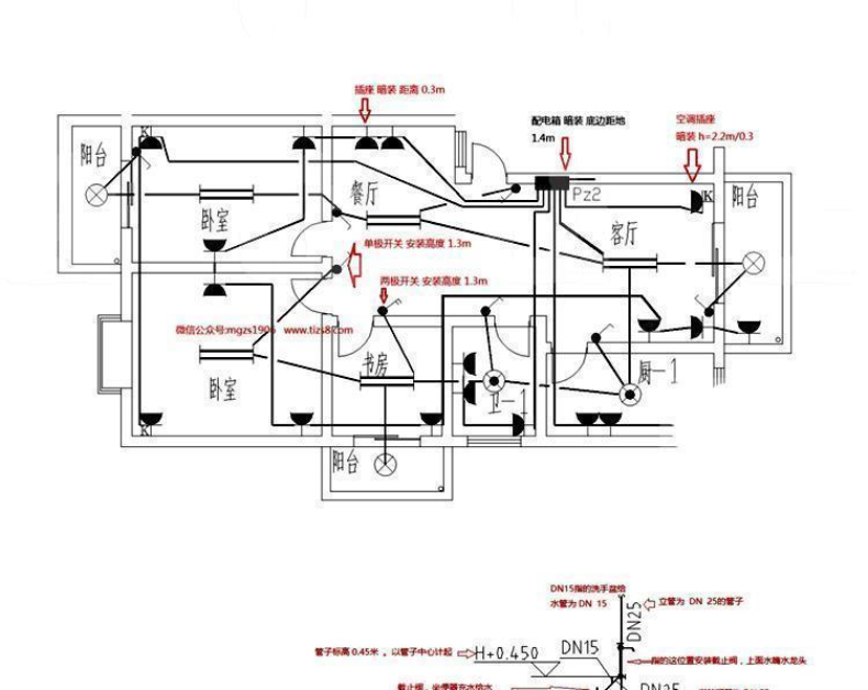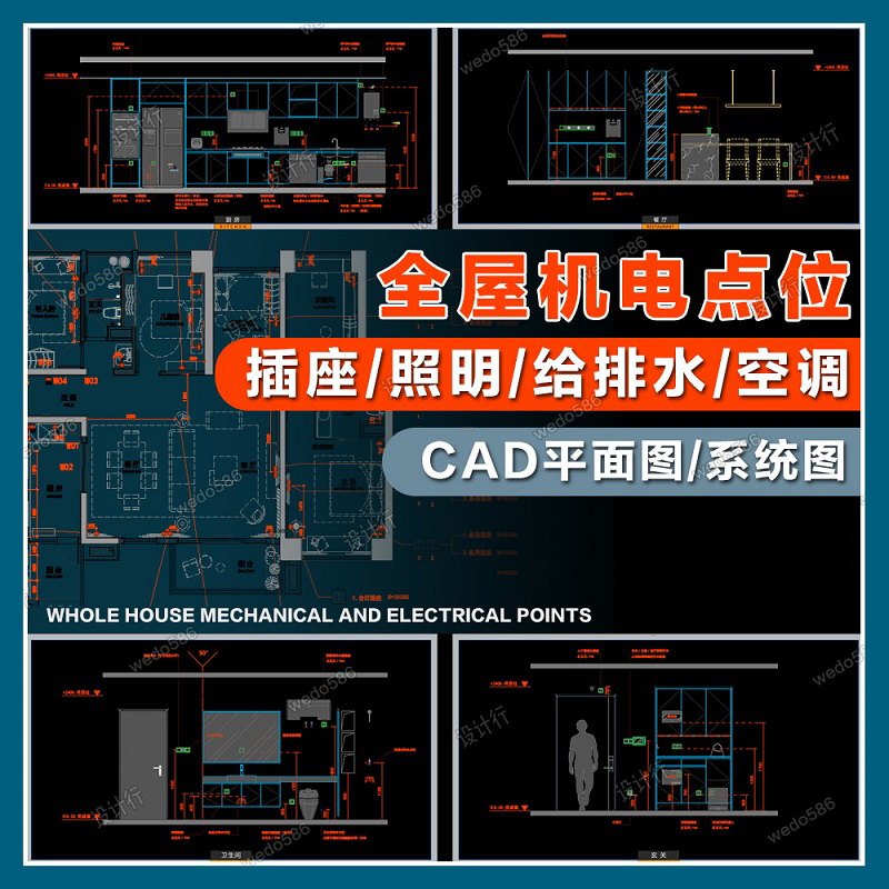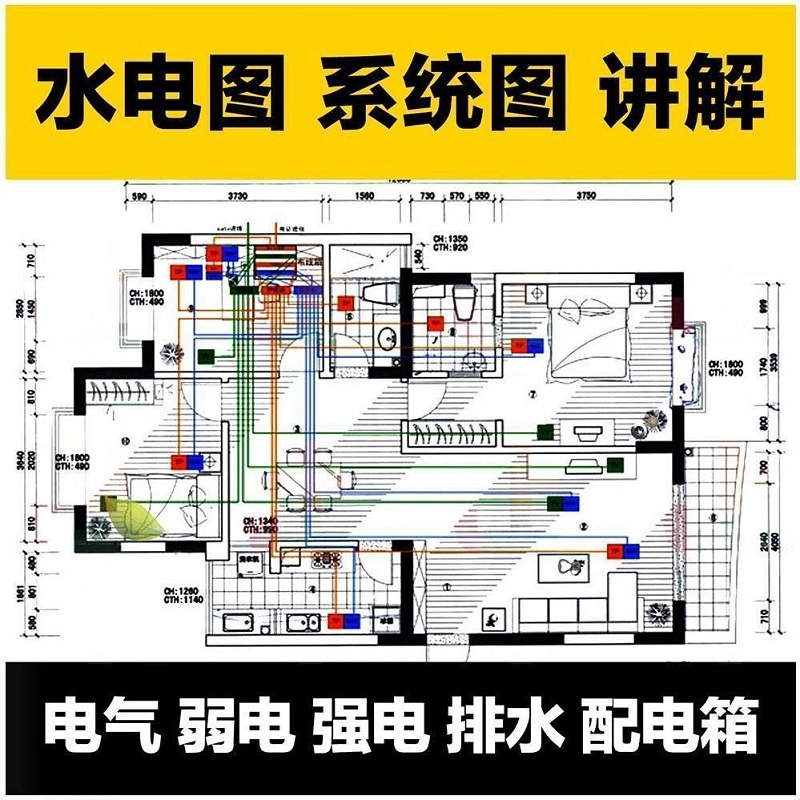 全屋水電點位 機電連線圖及開關插座水電點位 水電路圖 電氣系統圖 CAD平面圖 系統圖 施工圖dwg圖塊(128G U盤出貨 無需下載 即插即用)
