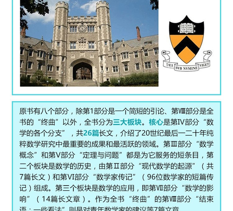 《數學名著譯叢:普林斯頓數學指南(第2卷)》內容生動鮮活,論文和條目都可以獨立閱讀,對於數學專業的師生以及對數學感興趣的讀者都不失為一本必不可少的經典讀物。