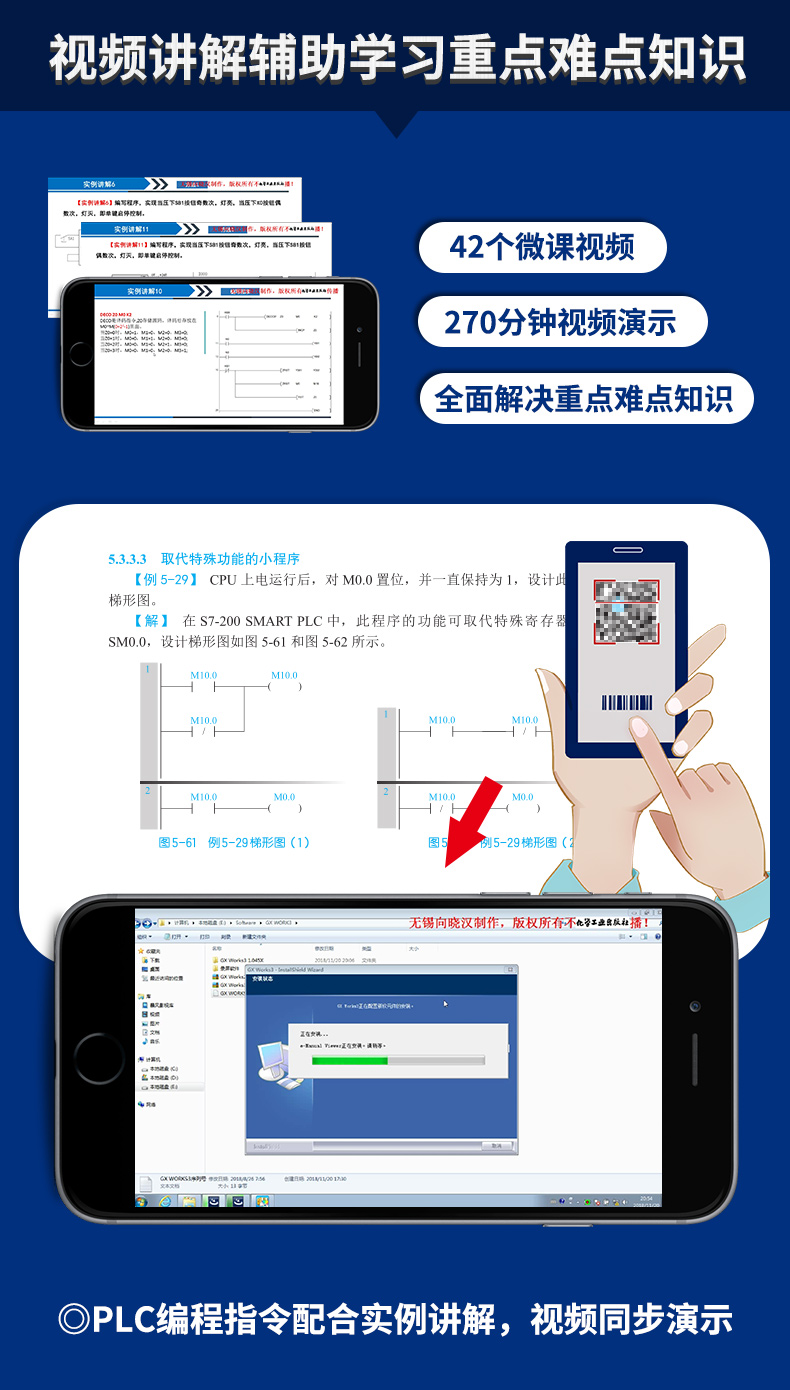 1 配套視頻演示與講解:精要分析各類型電氣控制原理,展示具體電氣控制細節與控制操作、接線、安裝、檢修技巧,直觀、易懂。