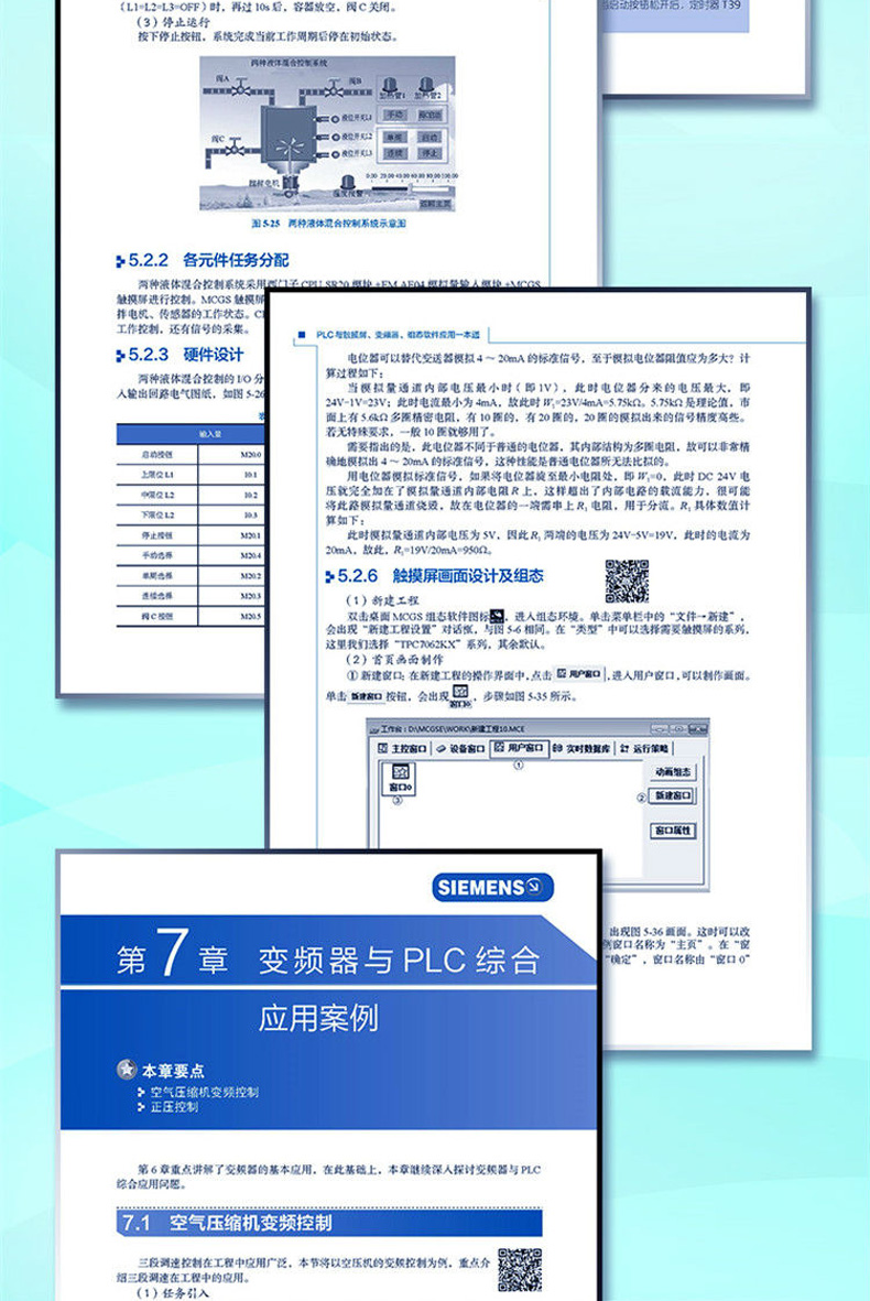 PLC、變頻器、觸摸屏、伺服系統(電機)是當前自動化設備經常用到的核心產品,通過以上產品可以實現多樣化的智能控制,如生產流水線、機械手、自動包裝機等的智能控制。伴隨工業自動化的發展與升級,伺服/步進控制以及PLC、變頻器、觸摸屏等人機交互控制系統的應用會更加廣泛。本書全面介紹了伺服控制系統、PLC、變頻器、觸摸屏實現電氣控制的全部基礎知識與控制應用技術。書中既有基本電路識讀講解,又有電氣控制與原理以及組裝調試、編程、檢修的步驟,同時兼顧智能控制新型電氣設備的應用,可以幫助讀者全面掌握伺服控制系統、PLC、變頻器、觸摸屏相關的知識和實用技術。