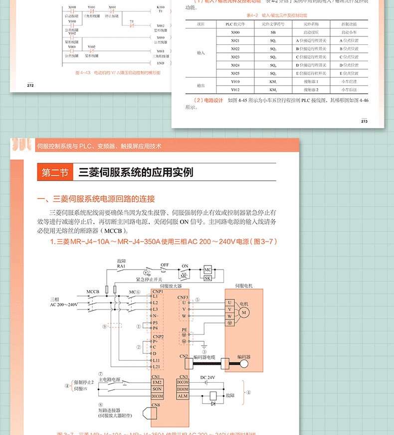 《伺服控制系統與PLC、變頻器、觸摸屏應用技術》一書全面介紹了伺服控制系統、PLC、變頻器、觸摸屏實現電氣控制的全部基礎知識與控制應用技術。書中既有基本電路識讀講解,又有電氣控制與原理、組裝調試、編程、檢修的步驟,同時兼顧智能控制新型電氣設備的應用,可供電氣控制技術人員、電工、電子技術人員全面學習。