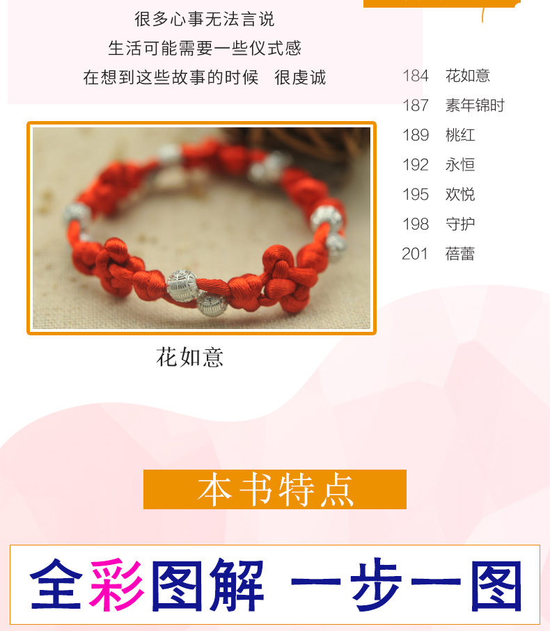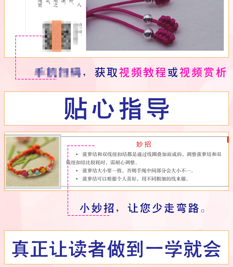 27種繩結基本編法+43款時尚手繩案例+64款拓展手繩案例;每個基本編法、手繩案例都有配套視頻,掃二維碼看視頻;全彩圖解,一步一圖,一看就懂,一學就會。