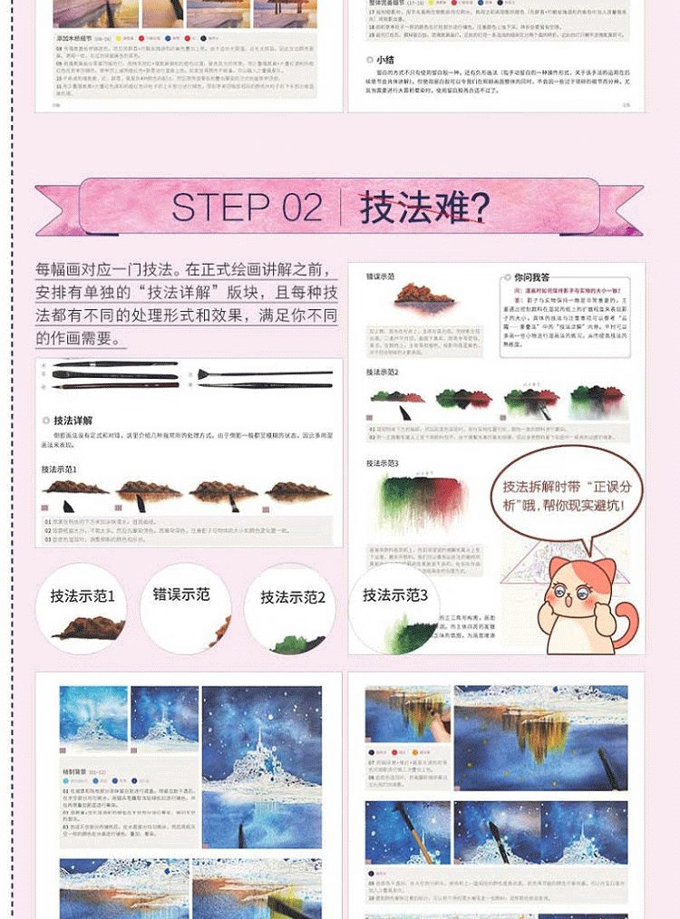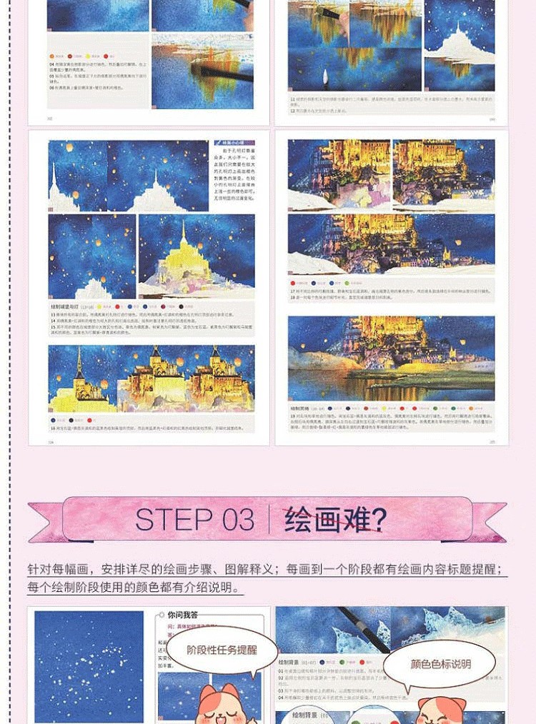 線稿分析、調色方法、步驟詳解、你問我答,圖文結合,讓你了解水彩插畫的表現技法和處理複雜畫面的技巧。
