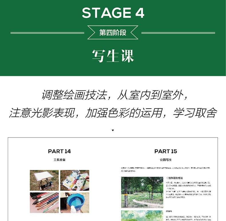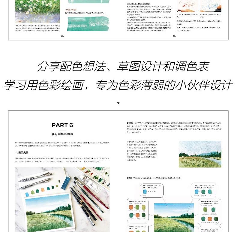 本書分為四大部分,內容包括24個特色技法案例與6個綜合技法案例。案例的知識點講解皆由淺入深,由簡入繁,且高濃度、強對比的畫面色彩效果特色鮮明。部分案例包含線稿分析、調色方法、步驟詳解和你問我答等結構,圖文結合,讓讀者在了解水彩技法的同時學會分析並處理複雜畫面的上色步驟,鍛煉對細節的觀察和深入刻畫的能力,體會寫實水彩帶來的別樣魅力。