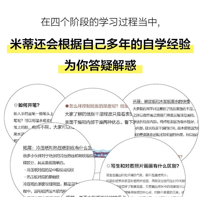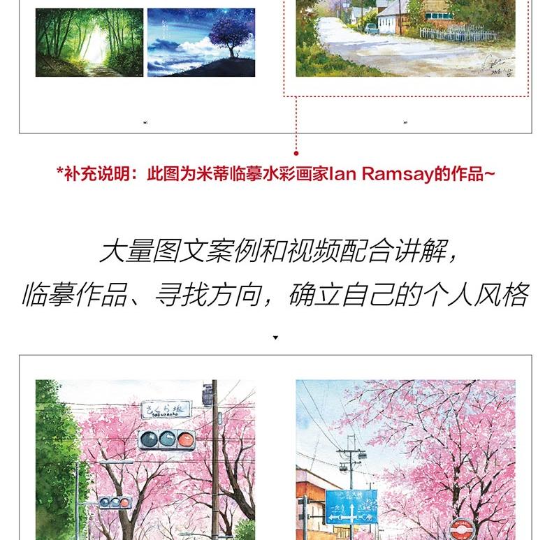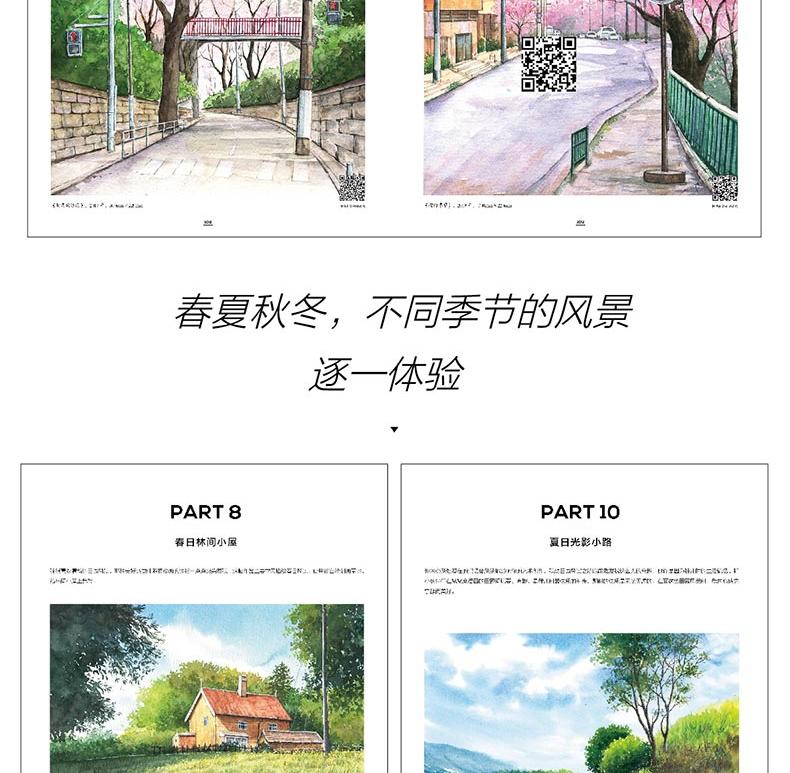 本書是水彩風景自學教學。在繪畫工具、技法、經驗上進行了全方位的深度剖析,是作者7年自學經驗的一個總結。書中用到了大量的案例和視頻教程,知識點很密集,按照自學的進程全書分成:基礎知識、進階技法、走進米蒂的水彩風景世界和寫生課四個不同的階段,用圖文結合的形式循序漸進地帶你走進水彩風景的世界,在講解技法的同時作者還分享了自己的自學經驗和心路歷程,更懂大家所能遇到的問題和瓶頸,是初學者的不二之選。