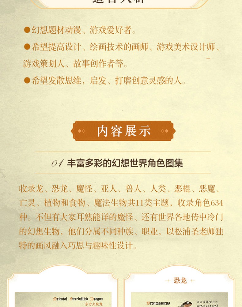 ●多達634種幻想生物,包括龍、恐龍、魔怪、亞人、獸人、人類、惡棍、惡魔、亡靈、植物與食物、魔法生物共11類主題。