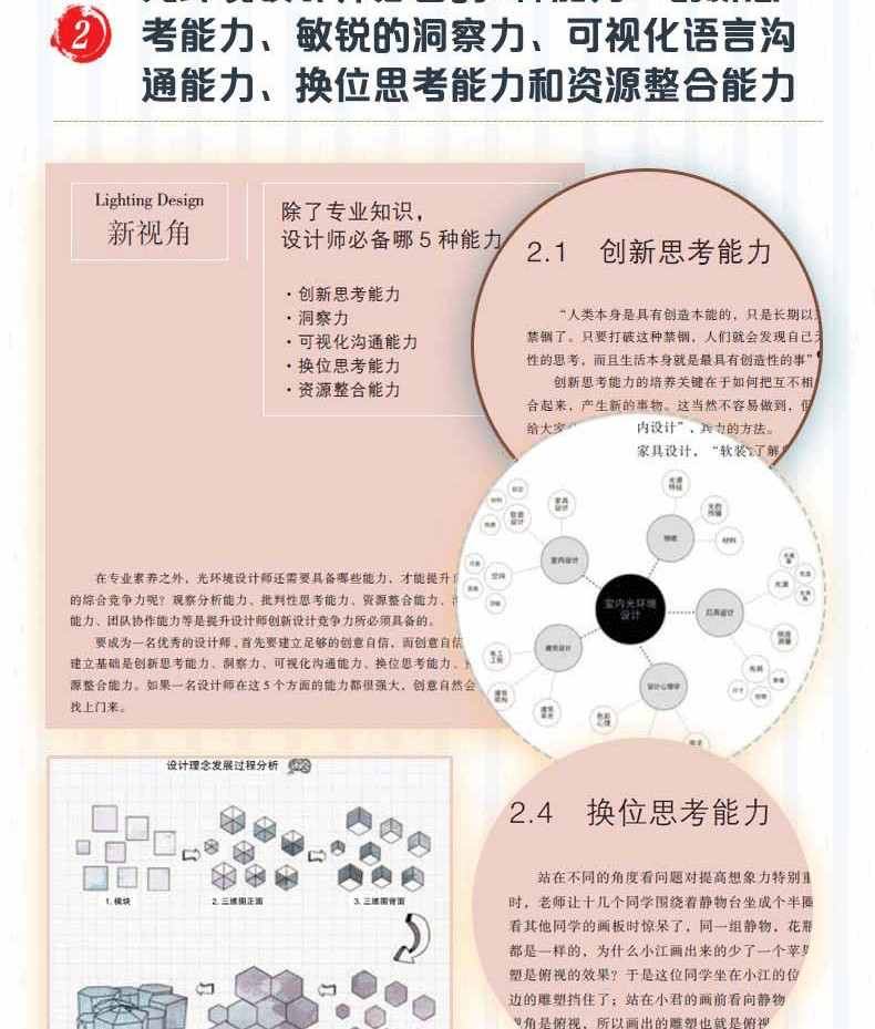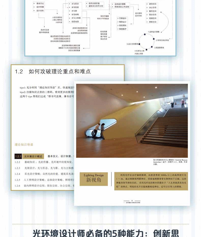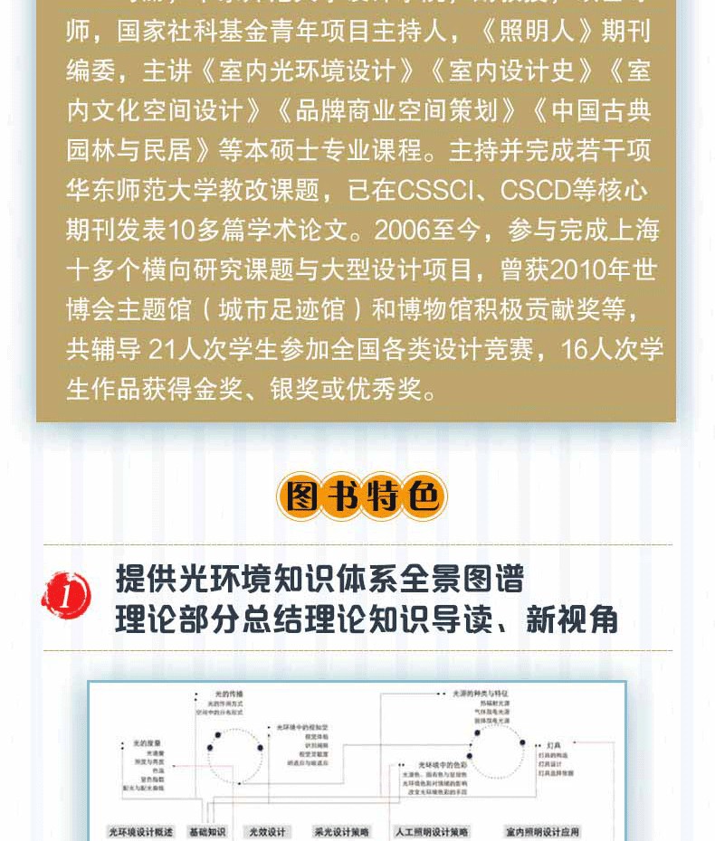 這是一部寫給設計師看的專業燈光設計手冊。在室內設計中,燈光的設計越來越為設計師們所重視,本書將詳細介紹如何為不同的家居設計提的燈光搭配,從光學原理到燈光技術的方方面面,從燈具的挑選到各區域燈光設計的展示,這些區括前門、過道及樓梯空間、客廳空間、廚房空間、餐廳空間、兒童房空間、衛生間、臥室空間、家庭工作間、休閒空間和半開放及外部空間,通過大量而實用的案例,為大家詳盡展現室內設計中燈光設計的手法與在不能空間的照明應用技巧。