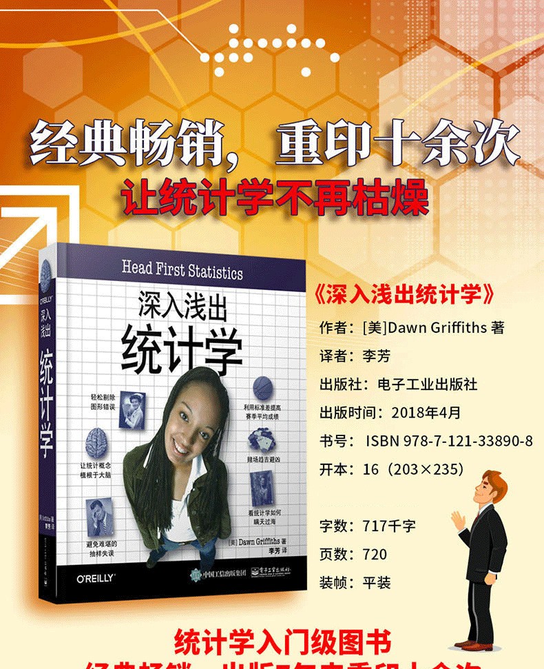 道恩·格里菲斯著的《深入淺出統計學》具有「深入淺出」系列的一貫特色,提供符合直覺的理解方式,讓統計理論的學習既有趣又自然。從應對考試到解決實際問題,無論你是學生還是數據分析師,都能從中受益。本書涵蓋的知識點包括:資訊視覺化、機率計算、幾何分佈、二項分佈及泊松分佈、常態分佈、統計抽樣、信賴區間的建構、假設檢定、卡方分佈、相關與迴歸等等,完整涵蓋AP考試範圍。本書運用充滿互動性的真實世界情節,教你有關這門學科的所有基礎,為這個枯燥領域的學習帶來鮮活的樂趣,不僅讓你充分掌握統計學的要義,更會告訴你如何將統計理論應用到日常生活中。