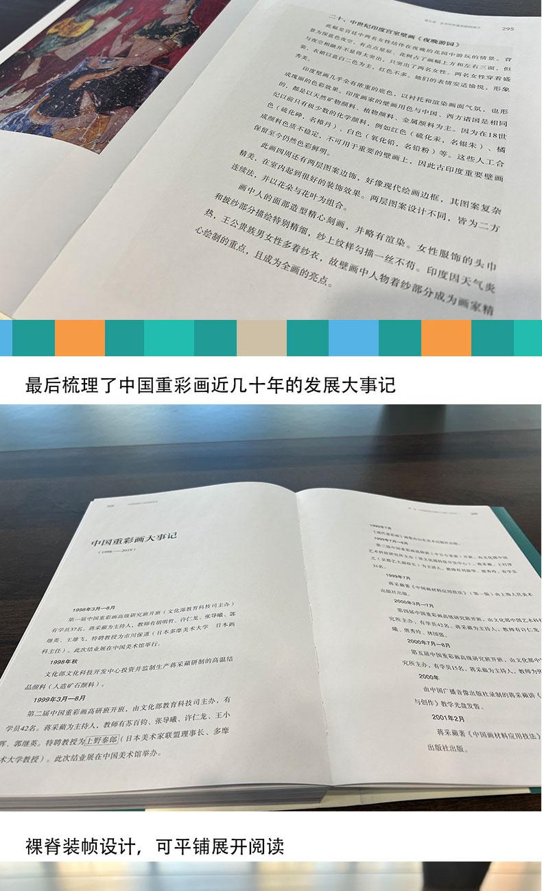 書中內容前半部分講述各種中國傳統顏料的特性及製作,兼及與現代顏料的對比;後半部分結合作者自己和當代十三位具有代表性畫家的繪畫創作,講述了顏料和工具材料的使用;最後梳理了中國重彩畫近幾十年的發展大事記。