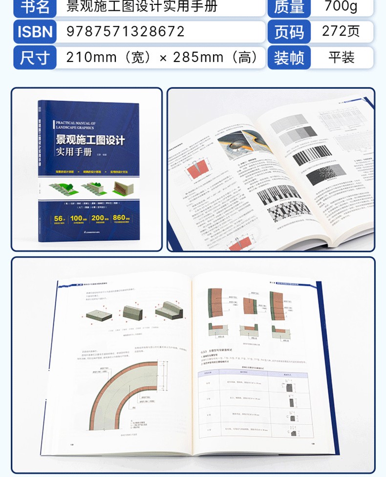 這是一本講景觀施工圖設計與繪製的實用手冊。作者在一線城市從事景觀設計13年,結合自身在景觀設計中多年來的積累與沈積,梳理出景觀施工圖設計中的常見問題及重難點,內容分為3篇,主要涵蓋景觀施工基本材料(磚、停車、鋼材、混凝土)、鋪裝設計與鋪裝圖製圖基礎(道路、牆緣石、停車位、園路設計)詳園小品(道路、牆緣設計)