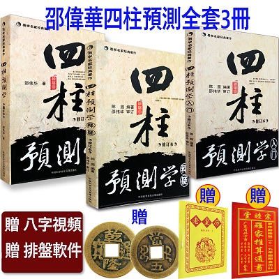 正版四柱預測學入門 釋疑 3冊(贈八字視頻+排盤軟件+乾隆通寶3個+老黃歷+羅家推算通書)