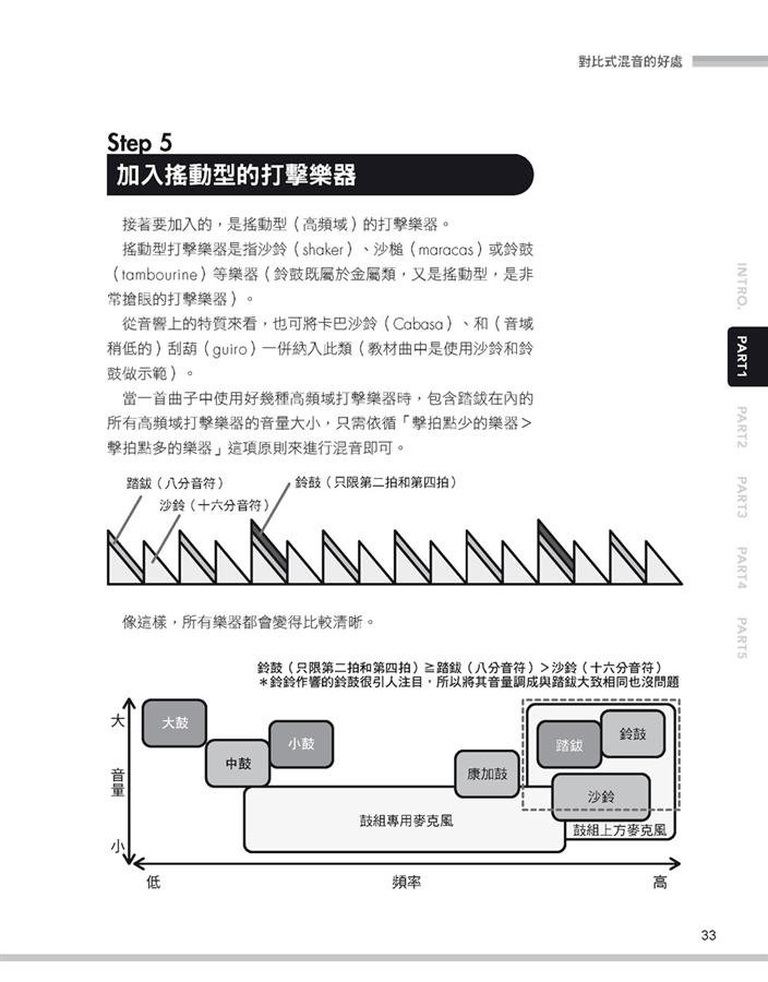 什麼是可提高音壓的正確高低波形?等化器(EQ)、壓縮器(Compressor)相關的各種參數數值有哪些基準可依循?現為日本專業音樂人、並創設人氣音樂講座公司的作者,將自身於混音世界反覆摸索後所獲得的經驗,濃縮成有系統的精華,規劃出一套最便捷有效的入門學習路徑。透過作者親切又清晰、如一對一授課般的解說,加上實際操作本書專屬的教學音檔,你將輕鬆又扎實地學會關鍵的基礎概念與技巧,讓自己的作品更加完美!