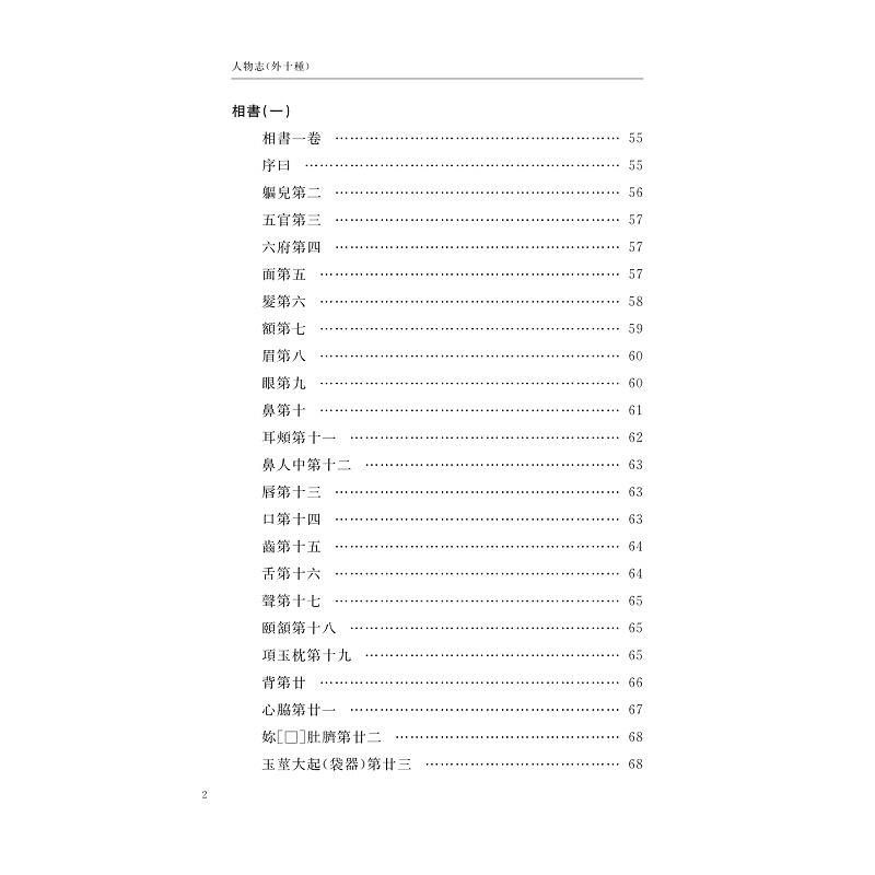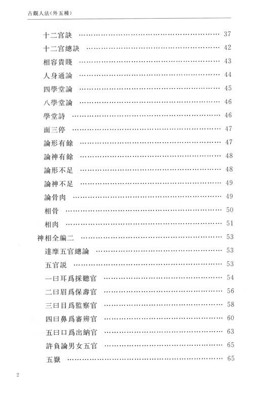 本書收錄《古觀人法》《神相全編》《相法十六篇》《鑑辨小言》《神相鐵關刀》《白鶴仙數相法》等作品。其中《神相全編》卷帙宏富,廣採諸家,內容詳備,堪當中國古典相人術集大成之作品。此書明清時流傳較廣,《麻衣相法》《統會諸家相法》等皆據其剪裁而成。 《古觀人法》與《鑑辨小言》短小精悍、眉目清朗,為文人相法之代表作品。其中《鑑辨小言》又名《冰鑑》,在近現代頗具影響力。 《相法十六篇》《神相鐵關刀》《白鶴仙數相法》三書文辭簡易,實操性強,為術士相法之代表作品。本書蒐集諸多版本,對所選作品進行了精心點校,供相法研究者和愛好者參考。