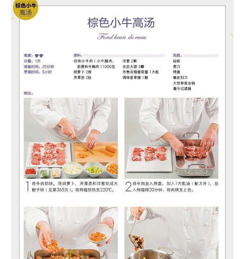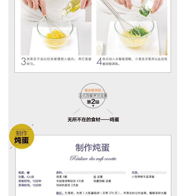 《博古斯學院法式西餐烹飪寶典》中的教學經驗將幫助烹飪愛好者探索法式烹飪技巧的秘訣,能向讀者朋友介紹這本厚重的書,我既高興又驕傲。因為,這本書就像資深主廚在位於法國埃庫裡(écully)的保羅·博古斯廚藝學院內教授學生烹飪課程一樣,且授課的主廚陣容還包括法國最佳手工業者獎(MOF)的獲得者。