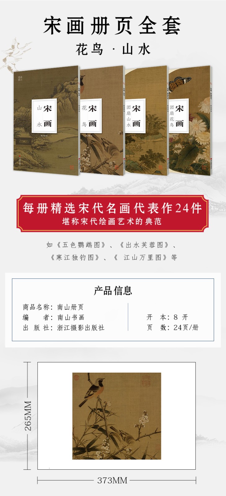 全4冊 宋畫山水花鳥畫冊頁團扇96張 正8開 散頁裝幀 高清圖臨摹裝裱收藏