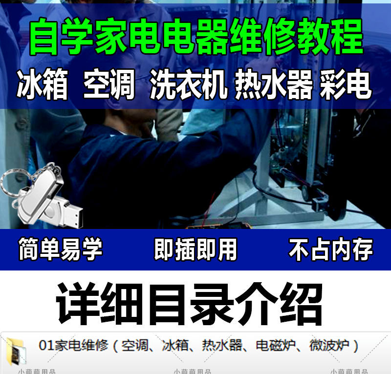 家電維修理技術U盤 視頻教程家用電器洗衣機微波爐故障自學習U盤32G
