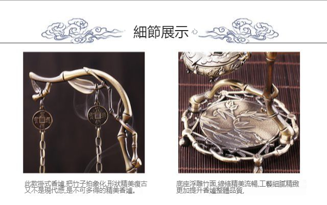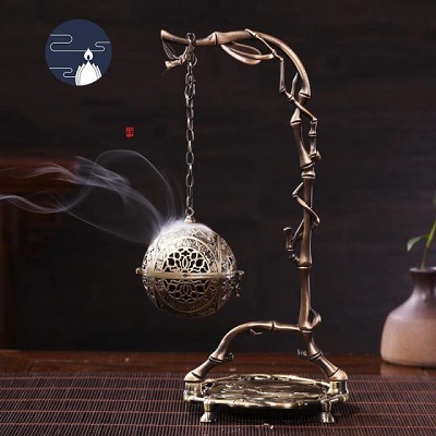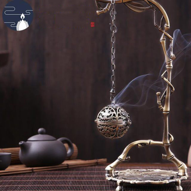 古風倒流熏香爐鏤空懸掛式檀沉香吊爐(青銅)