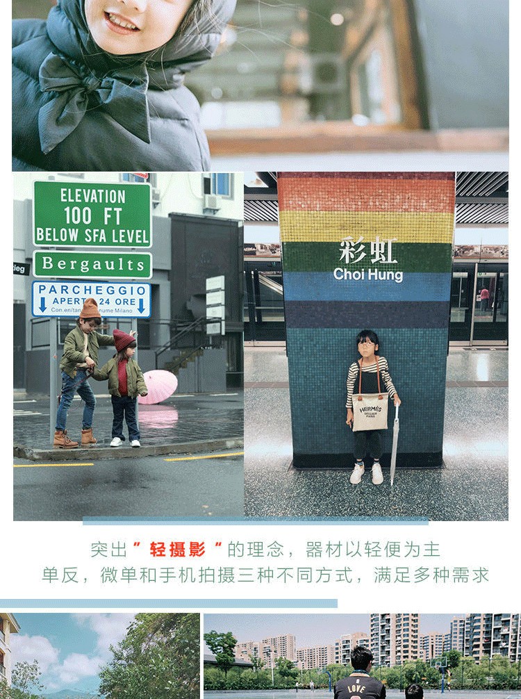 在本書中,我提出了一個特別的理念——輕攝影。首先,是準備工作的輕量化,無須興師動眾、全家出動,無須準備華麗的衣衫和精緻的妝容,無須反光板、補光燈,隨時隨地想拍就拍;其次,是攝影理念的輕量化,你不必特意去理解光圈和快門的意義,更不用懂什麼是反光板預升、高光色調優先,只要拿出你的攝影設備,拍下來即可;再次,是攝影設備的輕量化,無須使用沉重的專業相機,手機、微單相機、卡片機,這些設備就可以。