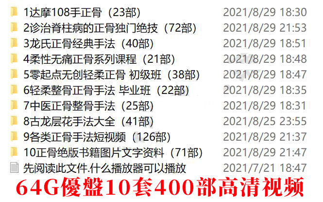 正骨教學視頻u盤龍氏正骨手法整骨培訓教程完整版脊椎頸椎推拿書